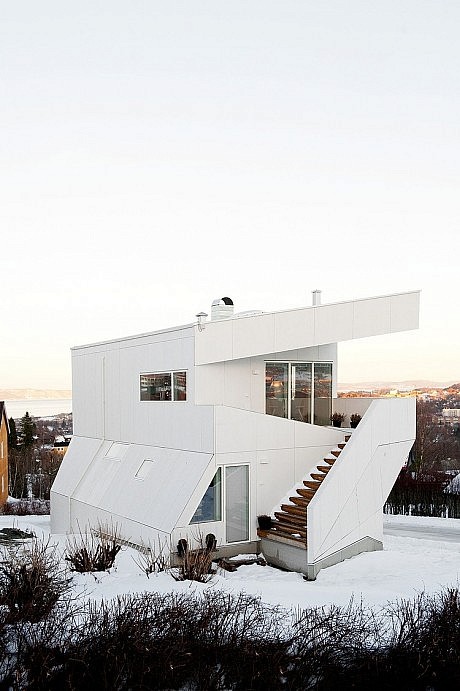 Situated in Norway, this compact single family house is overlooking the fjord and city of Trondheim. The house has a modest and abstract formal character in a neighbourhood with various density and architectural expressions.