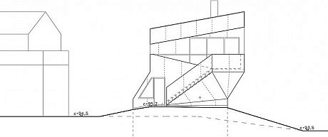 Regulated minimal distance to adjacent road is maintained by the shifting geometrical shape of the house.