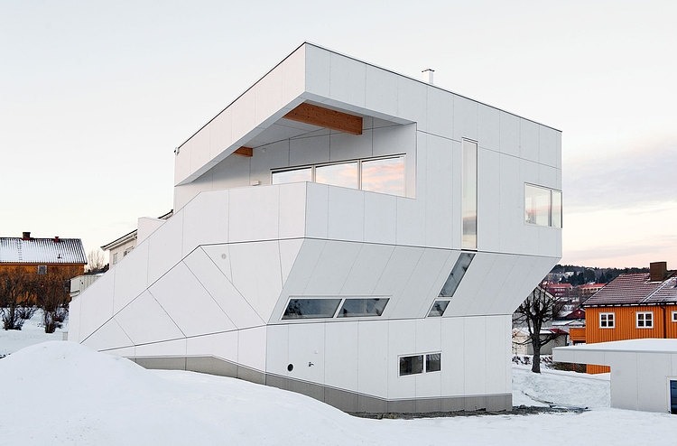 Situated in Norway, this compact single family house is overlooking the fjord and city of Trondheim. The house has a modest and abstract formal character in a neighbourhood with various density and architectural expressions.