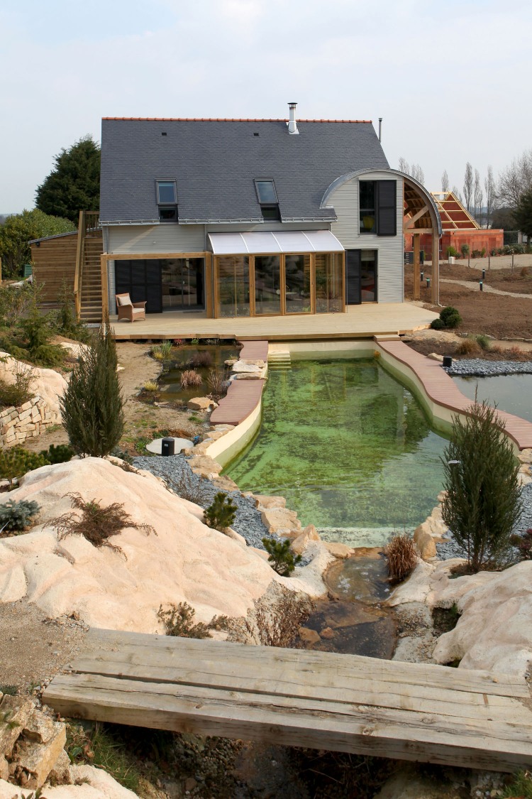 The project was born of the owners’ desire to build a new house on their property in BADEN, incorporating a landscaped garden and a natural, chemical free swimming pool. These were created before construction began on the house in collaboration with a designer and a landscape gardener. The garden was designed to provide protection from Westerly winds with a vegetable garden to the East. A distinctive ambiance emerged from this new, natural environment surrounding the construction site.