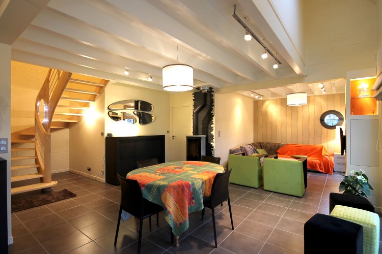The 45° pitched roof is covered in natural schistose slates and has a zinc-clad, arched dormer window used for storing wood. The roof is insulated with 300mm Rockwool. The vertical framework and pitch have a steam brake, twice tested for efficiency, to insure air-tightness.