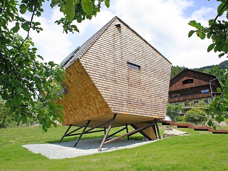 Contemporary wooden retreat designed in 2013 by Peter Jungmann situated in Lienz, Austria.
