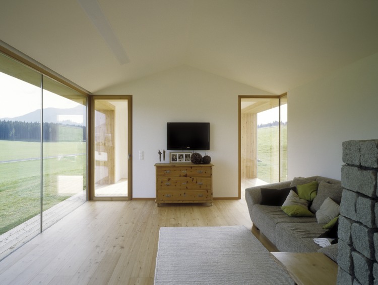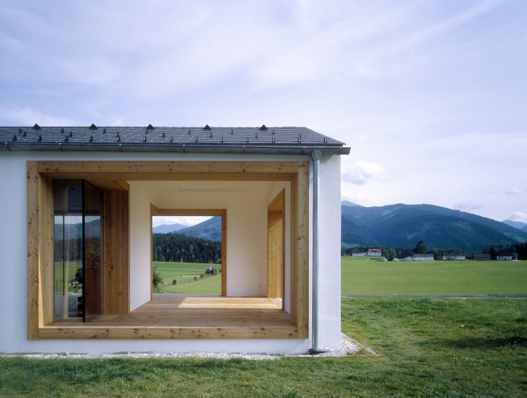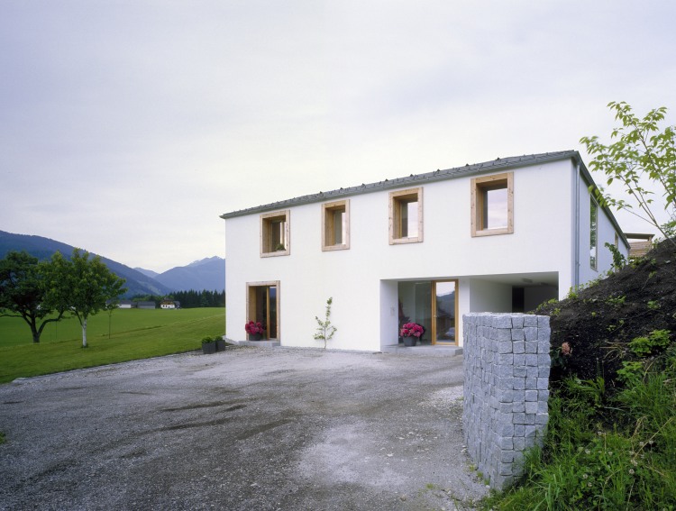 The gently sloped site is located in the municipality of Mitterberg in the Enns Valley (Austria), within a small village structure. Here the immediate surrounding landscape and the alpine formations Grimmig and Dachstein combine to a almost kitschy ensemble. Playing with abstraction, the dealing with building form and the quality of craftsmanship are constant companions during the planning and execution phase. Due to the U-shaped plan the house provides a courtyard and partially covered open areas that are to be understood as an intermediary between inside and outside.