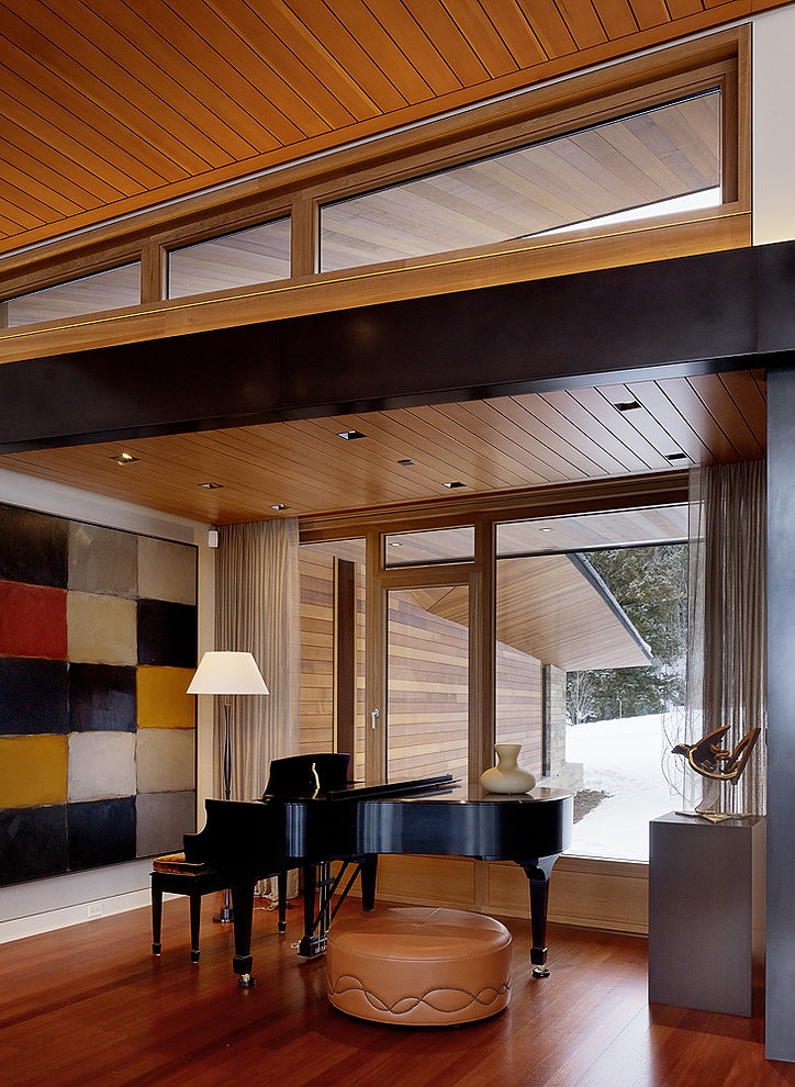 By organizing the program in a series of volumes that range across the site, individual spaces open to varied views and access points; from dramatic sweeping vistas to intimate, secluded experiences within the trees.