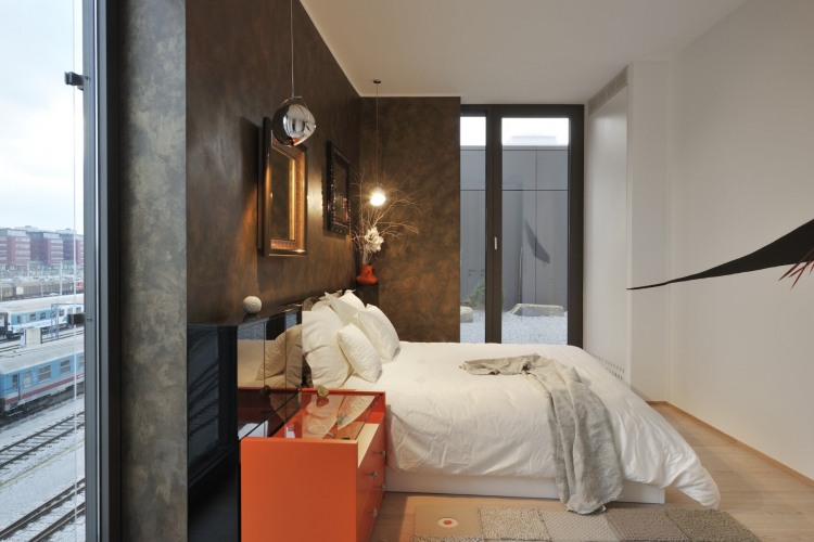 The overall image of this flat with a view of the Ljubljana castle and the slowly moving trains covered in colorful graphitty, radiates a certain artistic, dynamic and contemporary way of living in the capital of Slovenija.