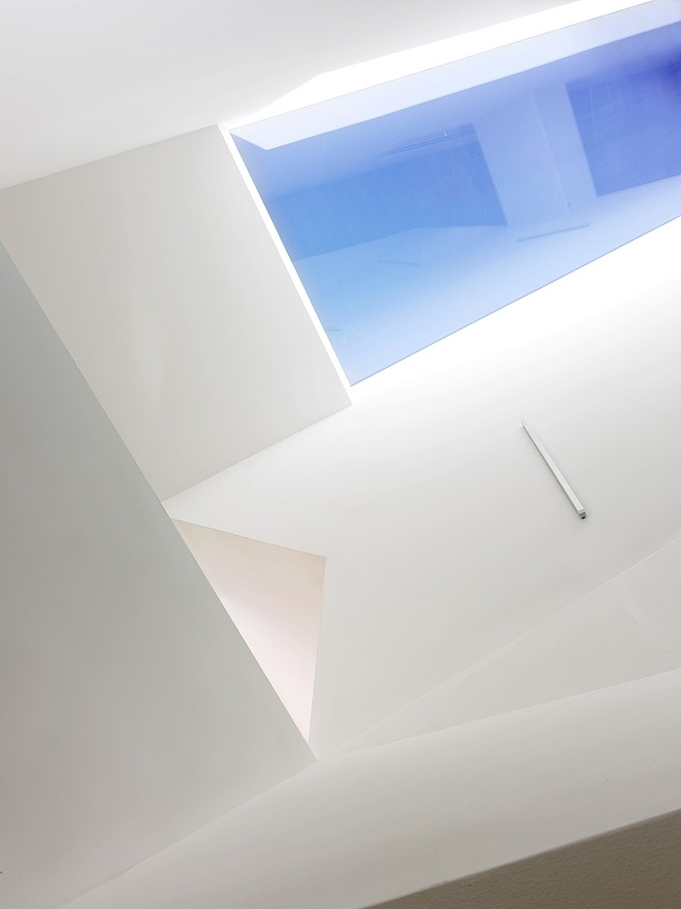The 3 floors of the house are connected by a generous stair with zenithal window. The plan of the living spaces is organised on the first floor arround a nucleus. The south terrace is open to a huge view on the alps and on the valley. It has been placed as an outiside extention of the livingroom. the bedrooms has each a different orientation.