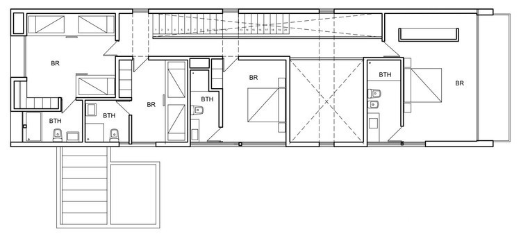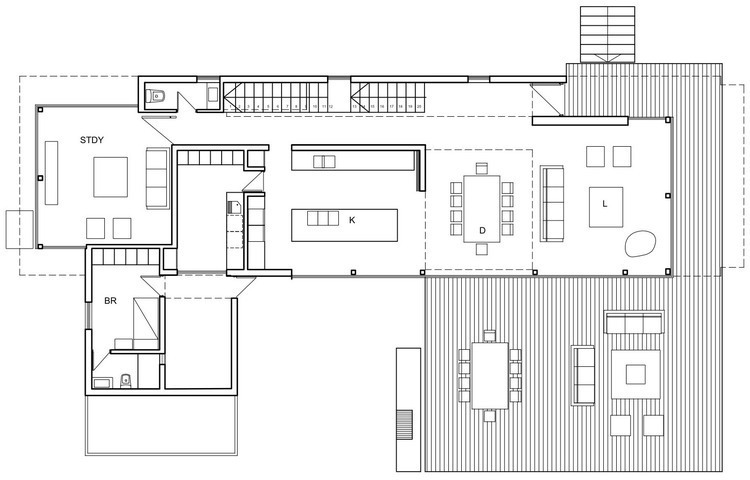 The plant of the housing develops longitudinally in the area, being protected from the south predominant wind in the sector, hereby the house is opened towards the north where it complements itself with a wide deck.