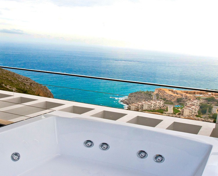 This allows you to enjoy incomparable views towards the south, with a panoramic view of the Bay of Altea and the Mediterranean sea in the background, either from its wide terraces, through the large windows, in any of its natural gardens, from the infinity pool or from an exceptional vantage point: the Jacuzzi upstairs.