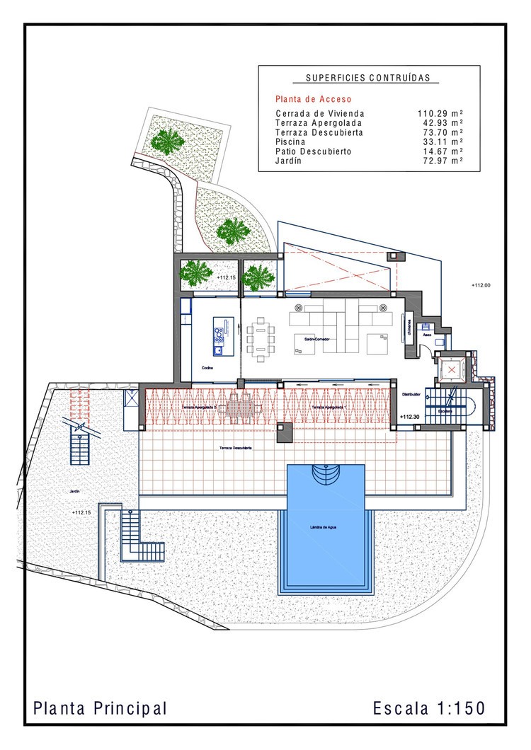 The experience of rising above the world we experience when we peer through the large windows. The interior spaces are embraced by large sliding glass areas, allowing the majestic areas to unite with terraces and pool, also bringing them closer to the exterior natural setting: the top of Toix-Mascarat urbanization.