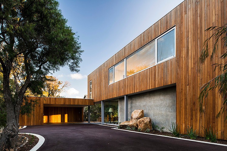This beautiful home was designed by renowned architect Paul Jones and Zorzi South, and stands tall on top of the dune, right on the beach at Eagle Bay, Western Australia.