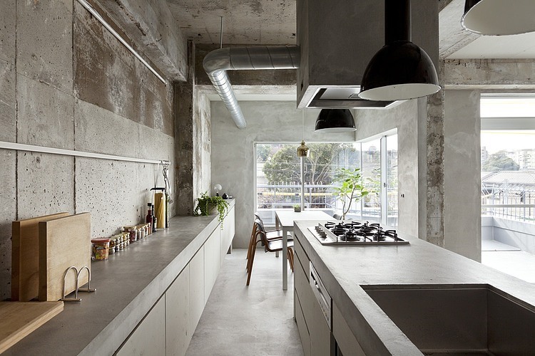 Modern concrete residence designed in 2014 by Airhouse Design Office located in Nagoya, Japan.