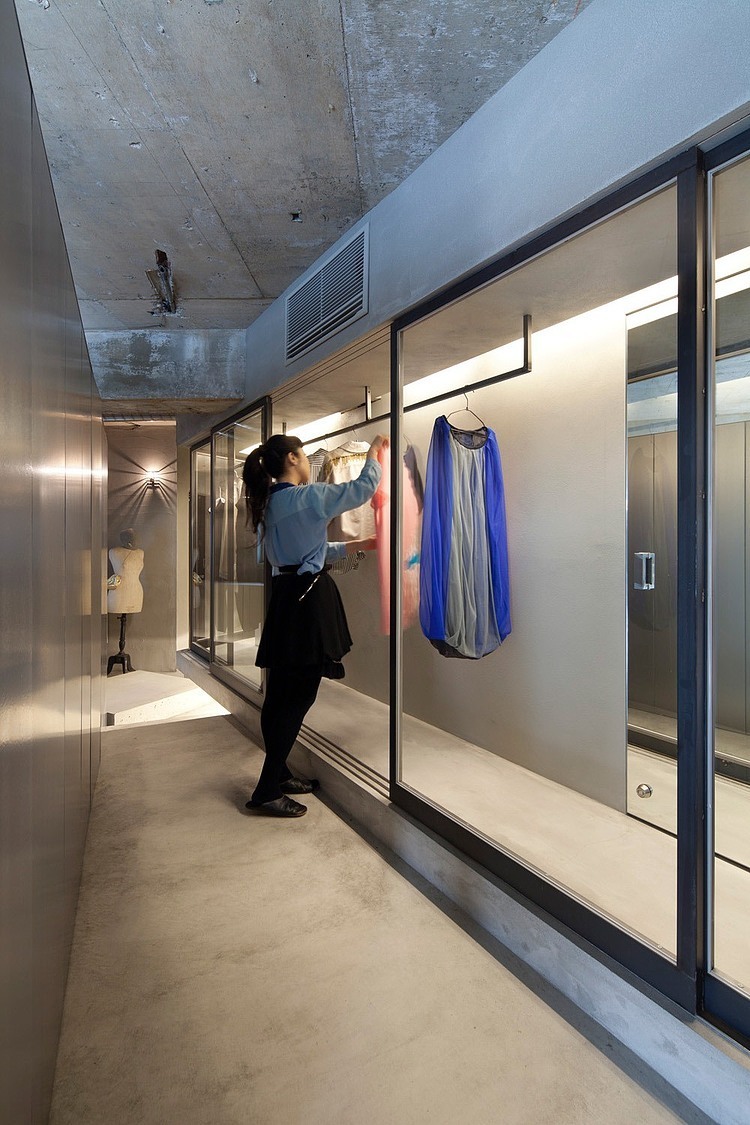 This project was a renovation of a 40-year-old reinforced concrete apartment. The spaces of the house were designed from a viewpoint of “storing clothes”. It was said that the client had a passion for fashion and loved trying on clothes or displaying newly bought clothes. The client requested a large-sized closet space. However, we thought it was a shame to completely hide away the precious clothes. Therefore, a large closet space, called a dress room, was made in the center of the plan. The room functions as a passage as well as a display storage and a hide-away storage, and the space continuously changes depending on the situation or season. By doing so, fashion blends into life, and I believe that the space became a place to change the client’s mood whenever it was passed by. This renovation project was done by constructing spaces through re-examination of the conventional ideas of clothing storage.