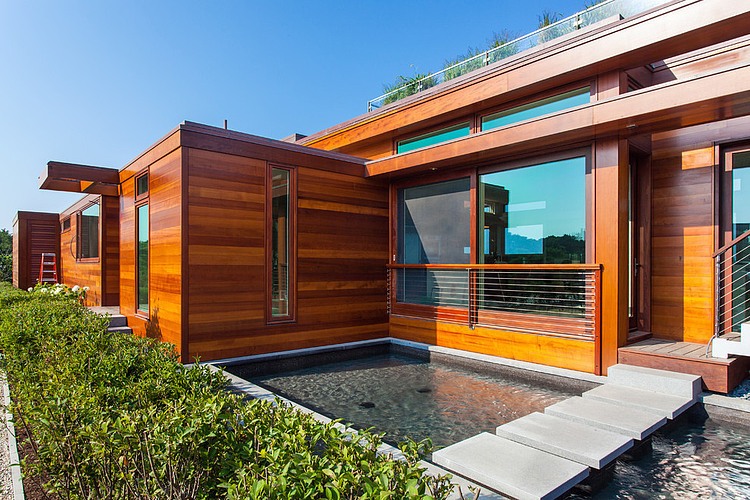 The house is constructed with sustainable and non-toxic materials, and powered with alternative energy systems, including geothermal heating and cooling, photovoltaic (solar) electricity and a residential scale wind turbine.