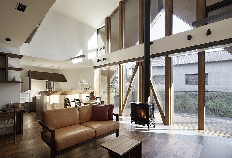 Japanese house have to adapt to change of the four seasons. The firewood stove of the living, anchorage for the family, warms the whole house in winter. The big eaves block the direct rays and protect an outer wall from rain. In the summer, wind comes out of the south window to the north. The architect planned this house to feel environment in the room.