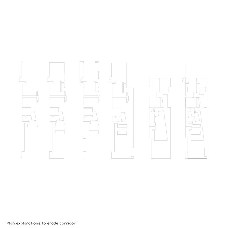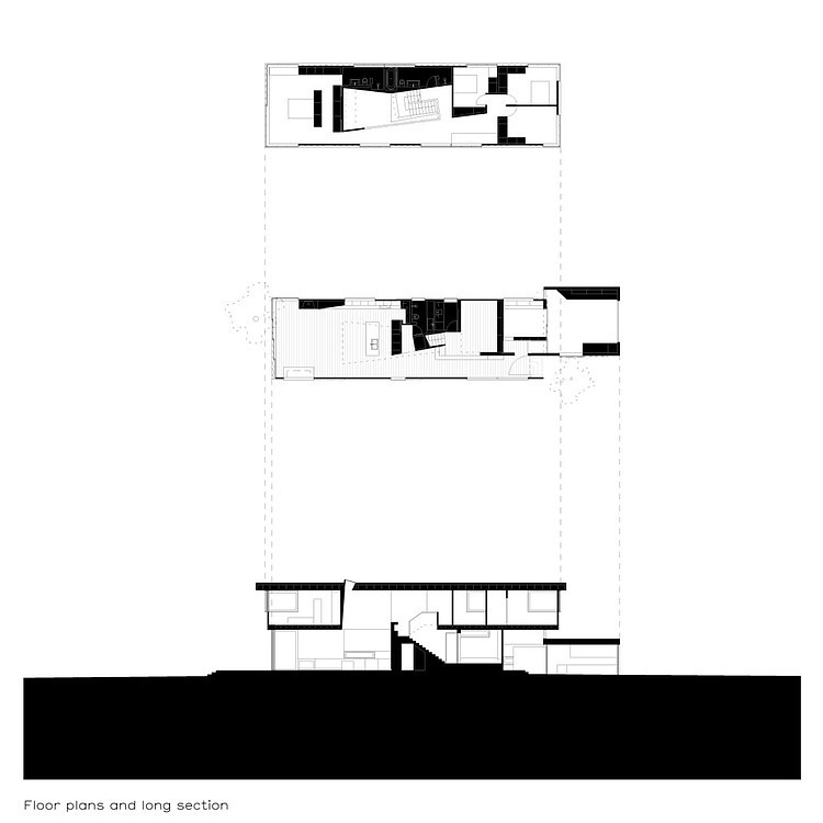 The concept was to create an exterior envelope that directly expressed the long, thin site geometry, but to use the elements of the interior to shift and break down the typical linear corridor space, using the interior geometry to orientate the house away from neighbors and to orchestrate connections with the sky and the garden from both levels of the interior.