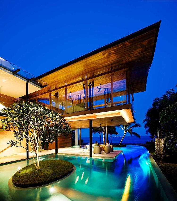 Situated in Sentosa Island, Singapore, this modern tropical seaside bungalow was designed by Guz Architects.