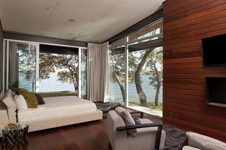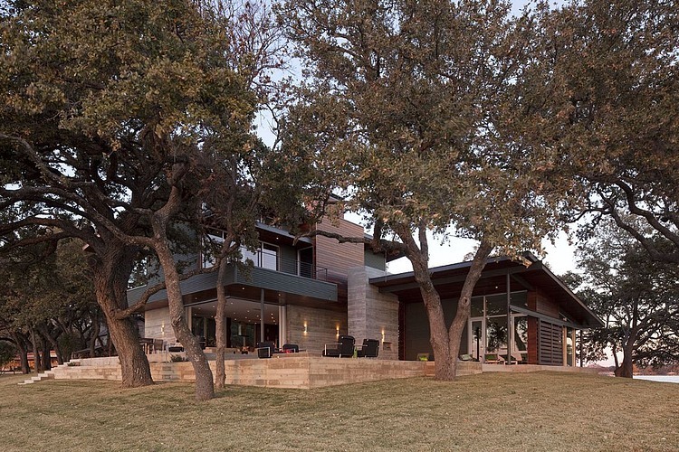 Designed by Dick Clark + Associates, this modern lakeside retreat is situated near Marble Falls, Texas, United States.