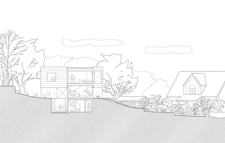 Mölle is an extreme location with regards to topography and landscape, as well as history and aura. Around the turn of the century in 1900, Northern Europeans were migrating to “Sinful Mölle” — where men and women were allowed to enjoy each other’s company at the same beach — leaving a trace of eccentric and experimental architecture from the first half of the 20th Century. However, from that point in time and onwards, experimentation has been overpowered by conservation. Our shared ambition with our client has been to recover Mölle’s dormant architectural tradition, extrapolating it into the 21st Century, while providing a house for generations to come suited to an open-minded family, presently with one child.