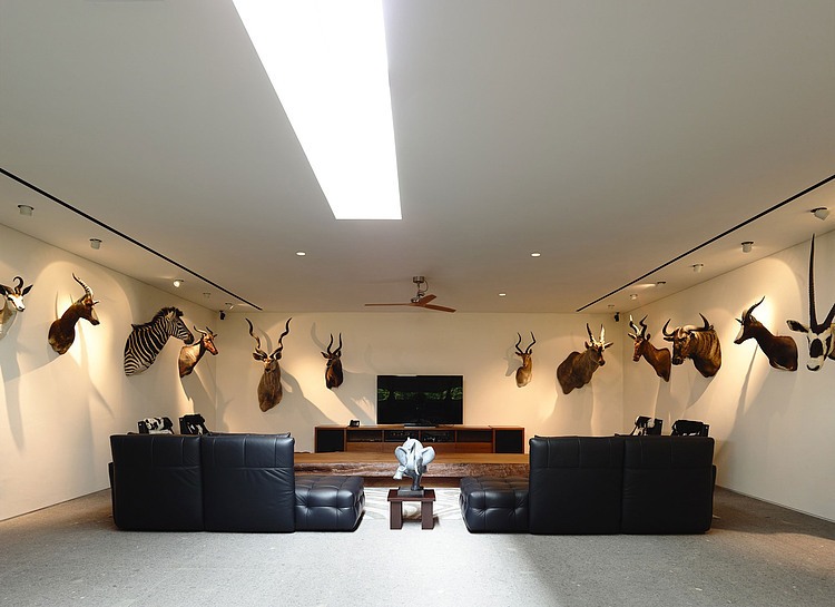 Capitalising on the site’s sloping typography, the basement was designed such that it opens up into a lower section of the garden, thus making it feel almost like being on ground level. Interestingly, the skylights also provide a spectacularly clear view of the rain tree even from here.