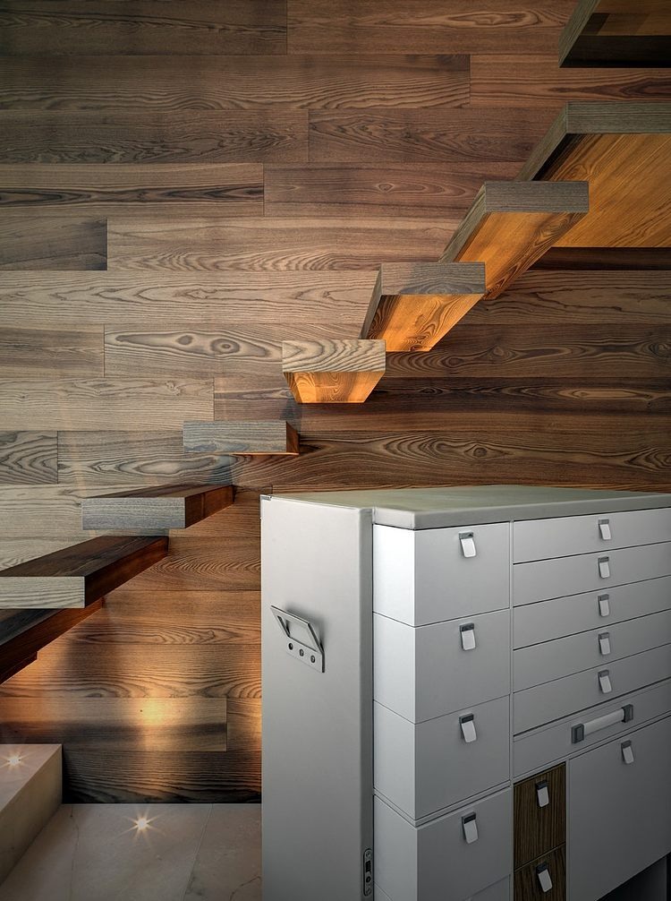 The design idea arises from the need to relate to the pre-existence of the site and from the choice to dematerializes as much volume as possible , causing them to become an integrating part of the context. As a result of a major excavation trough the rock we proceeded to restore the original section terrace making them part of the terraces. For the kitchen and the bathroom floor and for the lining of the pool, we chose to use an absolute black granite, sandblasted and brushed. For the flooring in the living area and for the area besides the pool was used a termocotto ash-wood. This last choice let have a strong connection between interior and exterior.