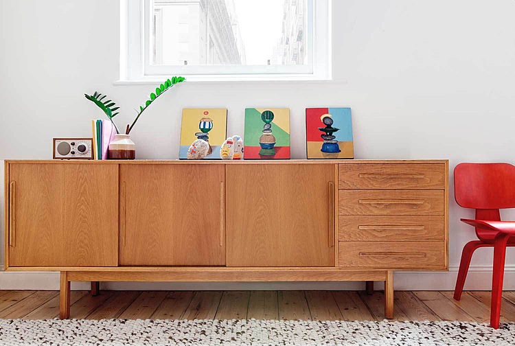Located in a heritage-listed building in Melbourne’s CBD, this project updates a 75m2 (775ft2) apartment for a young family.
