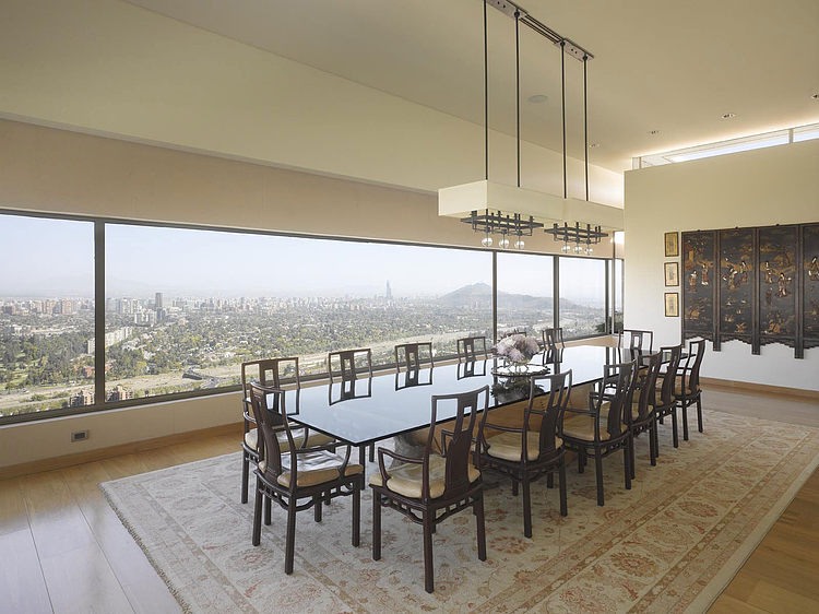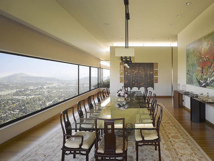 Contemporary concrete residence designed by Izquierdo Lehmann for a wealthy senior couple located on top of a hill in Santiago, Chile.