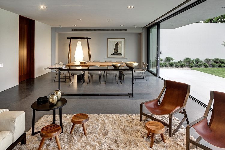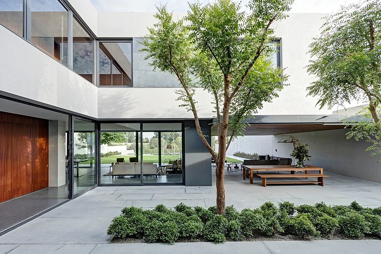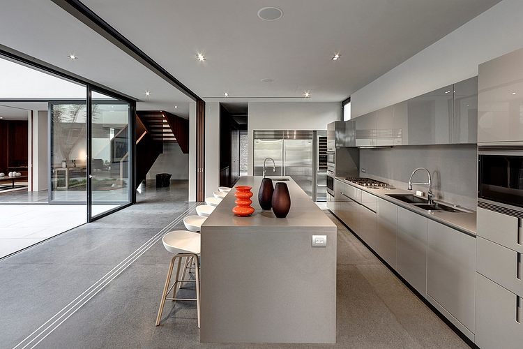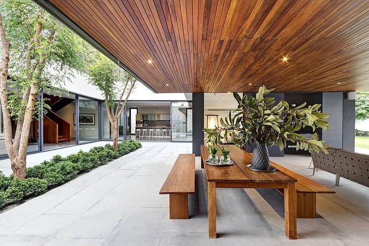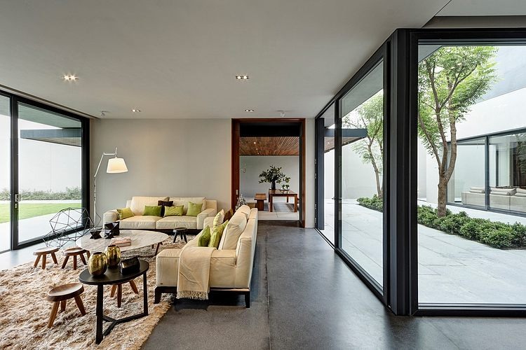 A central courtyard scheme was implemented to introduce natural ventilation into every space of the house without compromising privacy. The corridors around the courtyard on the ground floor are defined by a series of operable windows that allow the kitchen and living spaces to bleed out into the exterior, when the weather allows it.
