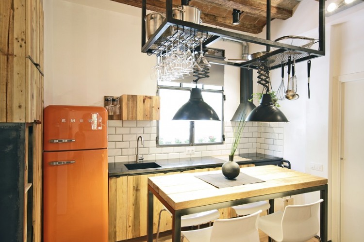 We were hired by the real-estate agency Casc Antic to design and produce the furniture for one of their apartments. To meet the modern industrial look they asked for, we “transfodesigned” pallets, reclaimed wood from construction sites, old steel pipes, discarded lamps, toolboxes and various other objects.