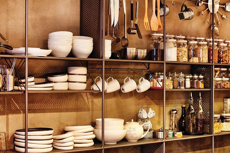 – One of the longitudinal walls was resolved as storage. A very simple system was designed with iron rods climbing two floors and running the length of the house, without categorizing the living room, kitchen, library, or bedroom. 12-millimeter iron rods come out of the wall and 16-millimeter rods connected to those create a grid over the wall surface. Various shelving units and accessories were designed to fit this system, such as a single shelf, double- or triple-story shelves, vertical separators, or hanging units. The user may arrange and utilize this storage system however he likes: as a library, a woodshed, kitchen storage, or a wardrobe.