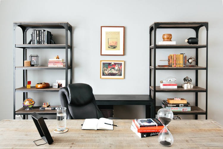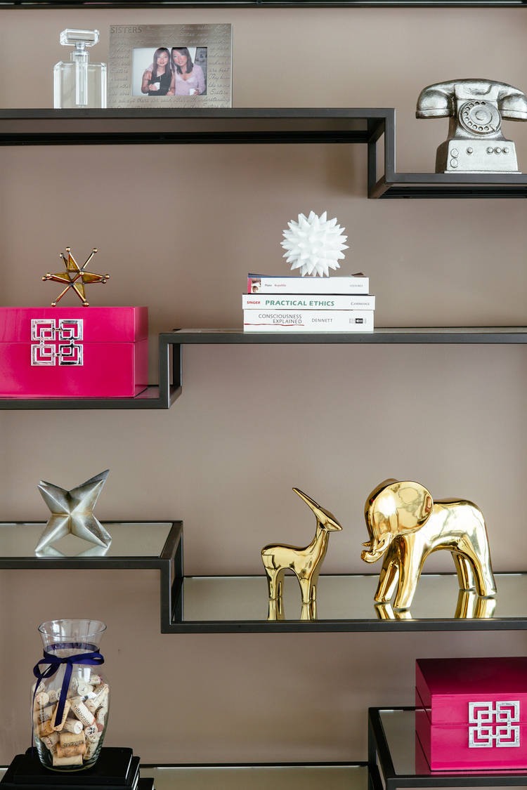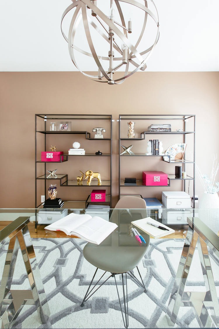The owners of this new-construction house in Potrero Hill were upsizing from a small one-bedroom apartment in a SOMA high-rise. Without much existing furniture, we had the opportunity to start decorating from a blank slate. Quickly, the clients discovered that they both loved warm, modern interiors, so we created a living+dining area with mixed textures and a “casual chic” feel. But for their “His” and “Hers” offices, we had a lot of fun reflecting their individual personalities.