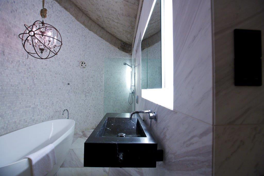 The interior has been meticulously thought out. The curved lines of the specially customised furniture echo the rounded dome of the building, with the aim of allowing ideas in the mind to float around without obstruction. The Timothy Oulton Shabby sofa has been reinvented with soft curves and the stainless steel and marble kitchen has been designed to hug the curved wall. The Timothy Oulton Crossfire dining chairs, which sit around the custom-made round marble table, are upholstered in Timothy Oulton Baa Baasheep’s wool for a sumptuous texture. There is an inviting, laid-back and cosy vibe to the room in which people can really relax and socialise.