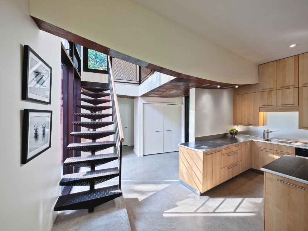 This cottage is designed for a couple with a young son and will serve as a center-point for the gatherings of a greatly extended family and will one day become the family’s primary residence. The challenge was to implement an architectural strategy that breaks down very large programmatic requirements and, as a result, the seeming bigness of the proposed home. The spatial system therefore is conceived as a porous and open ground-floor that supports a solid, “private” volume above. All of the primary living and communal functions, such as the indoor and outdoor living rooms, kitchen and eating area, and sauna open either literally or volumetrically to the surrounding lakeshore. The master bedroom suite is also placed on the ground floor since the house is meant to be a home for a lifetime and issues of future accessibility are thus addressed. The upper volume, a heavier wooden box clad of Western Red cedar, is cradled by the seemingly delicate armature below and houses spaces that are introverted, namely the son’s bedroom and guest sleeping areas. This dropping of the second-floor volume into the ground-floor level is meant to create spatial interest and intimacy throughout the large, communal areas of the interior while minimizing the house’s overall size from the exterior.