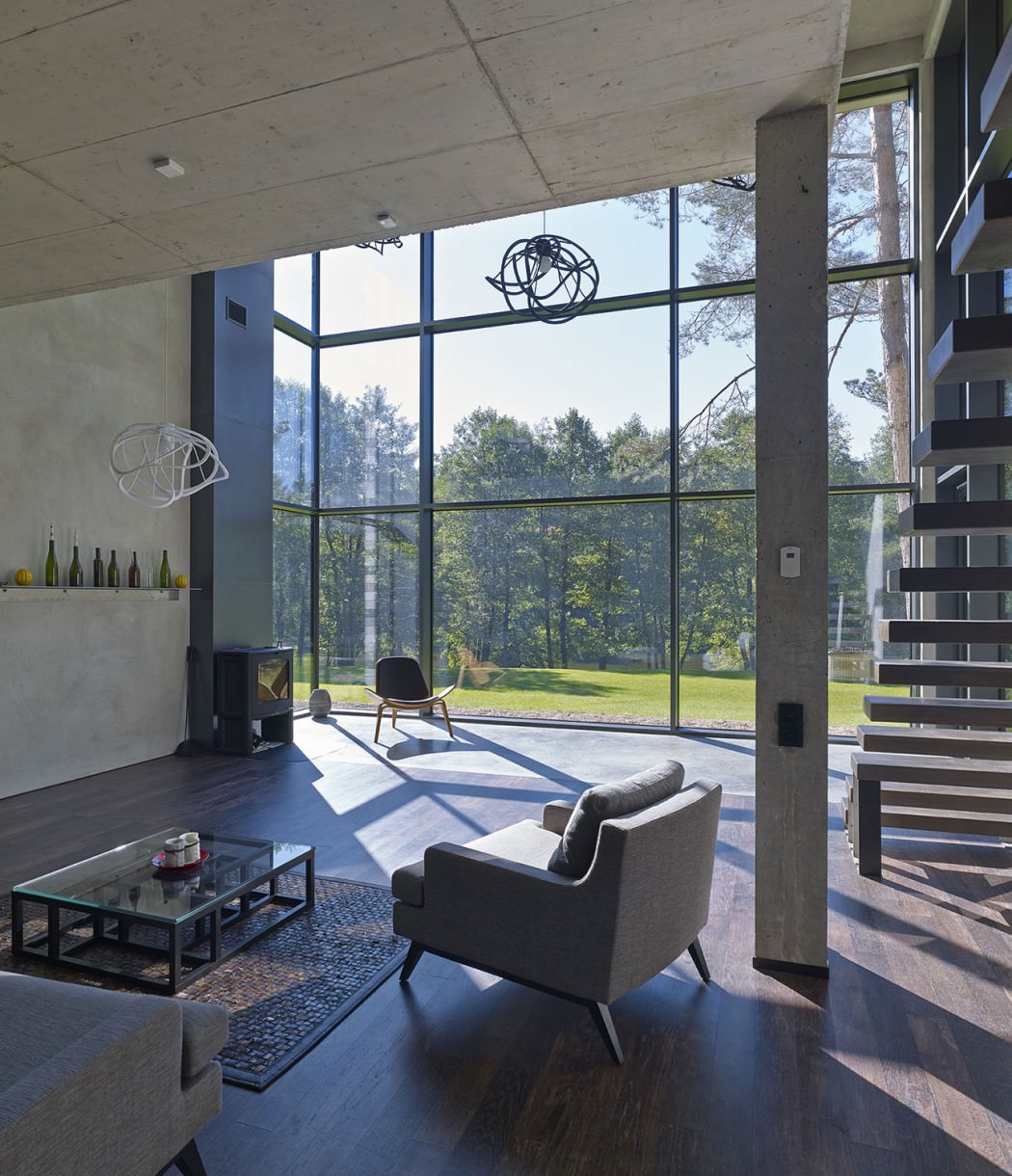 This contemporary 2,432 sq ft residence is situated near Vilnius, Lithuania. It was designed in 2014 by GYZA.