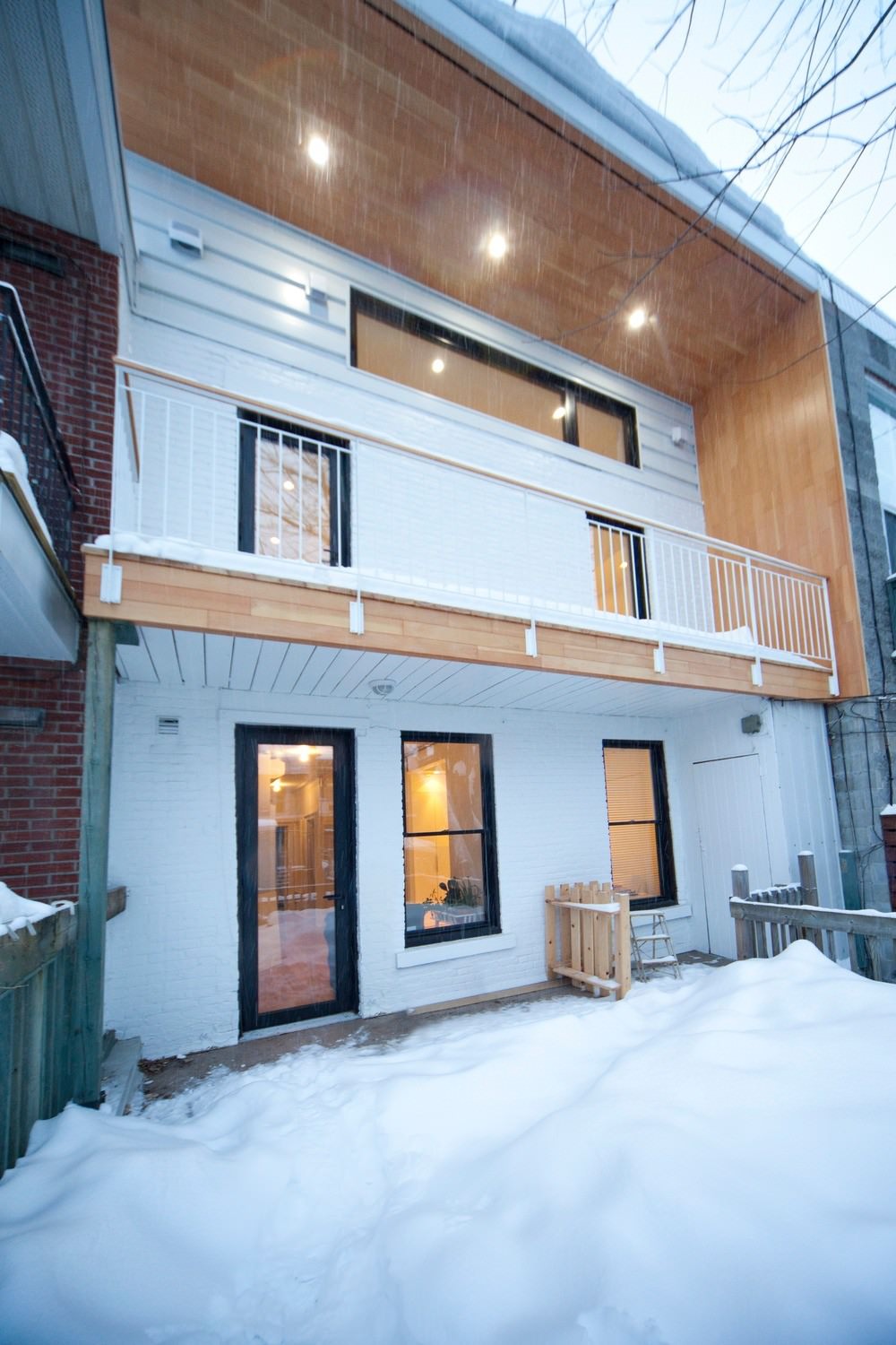 Inside the attic, we found that the current flat roof was built on top of a former sloped roof together reaching a thickness of over five feet which was mixed in with layers of tar. Through a subtraction process and by replacing the existing structure with new joists, we gained 5 feet of space, therefore making up a 13 foot height on the third floor. The space of the new master bedroom and artist studio gained in natural light with the integration of a ribbon window where the attic was.