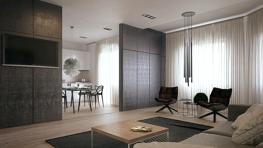 This contemporary 1,184 sq ft apartment designed by Yevhen Zahorodnii is situated in Moscow, Russia.