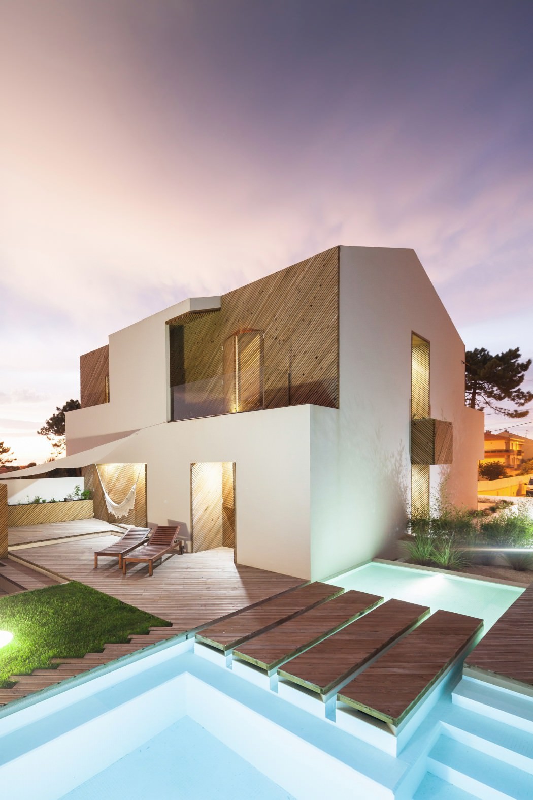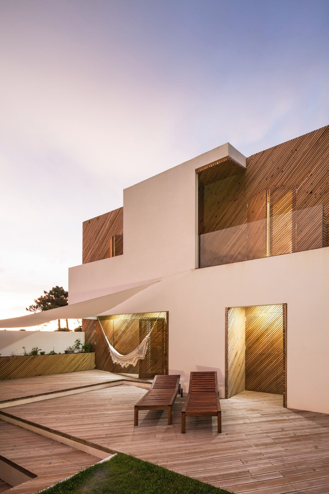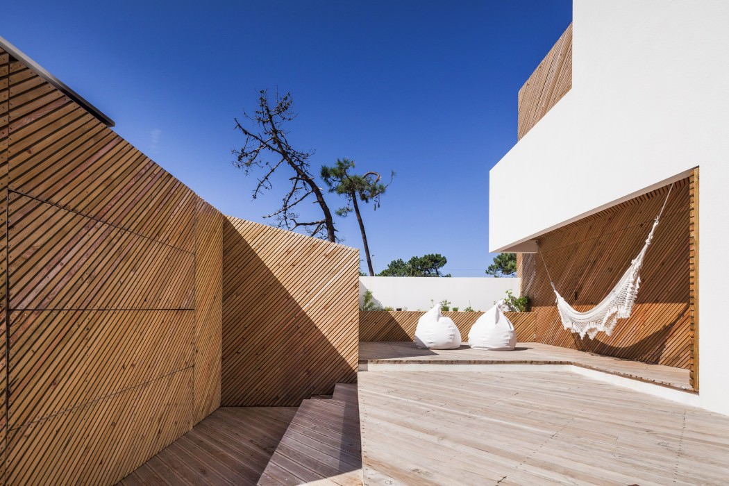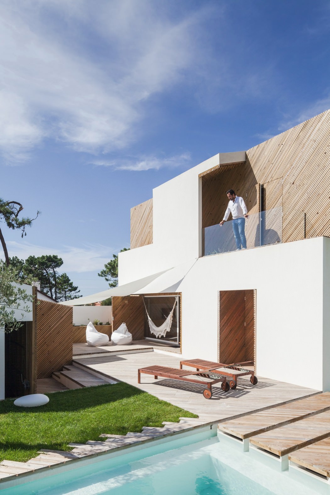 These were the words of my clients Rui and Marisa when asked about SilverWoodHouse. I could not be more impressed by the answer, on my way to see the architecture. A challenge, an interpretation, a creation, by me, not for me, but for someone. In my first big project and work, the anxiety of the final contemplation and live the power of the space, was huge. I live in it as a guest of course, but I was able to dive into the pool and lie down in the sun, a treat and an honor to take advantage and try my work. Yes, SilverWoodHouse, is my presentation to the world of design, architectural and constructive, my route in the course of a project / work, moves from its conception to its construction. I have literally gotten my hands dirty, mainly in the art of carpentry. More gratifying, still, was seeing the family pleased ( parents included) with the final product, and the pride they felt in showing the “work” to their guests. It all started when I found myself without a clear career path after having executed a project for relatives which left me dissatisfied due to the inability to participe in the process from beginning to end. By feeling what architecture could achieve, which I believe was taught to me, I bought an unoccupied house and transformed it into a dwelling and an office. This is my biggest mockup, my ever evolving, endless project. My upbringing and surroundings were always connected to construction. On one hand I was surrounded by family and friends who were carpenters and masons. On the other hand, I was surrounded by a rural environment where creating gadgets, slingshots and cages were a preferred hobby. In addition, the excessive costs of materialising my ideas lead me the decision of making my own home from start to finish, by making mistakes, unmaking and remaking. As the result thus far was good, a couple who was walking near the beach liked and noticed that my way of perceiving architecture could solve a problem they had. I was shown the house where the couple intended to live, provided that its transformation was to their liking and amazed them. I was asked to see what could be done with the building, without any budget limit nor deadline. The request only entailed the following: a work of art, a fascinating product in which the couple could see themselves living in. And so, as I think architecture is the interpretation of the client/user’s needs, I sought out to know them, exhaustively,their tastes, quirks, routine and pleasantries. A solution was presented: The SilverWoodHouse. The remodelling work was one of a soulless house of typical construction , interior distribution and rural exterior interpretation. I decided to bring the beach to my clients so that they could feel, every day, the proximity of the dunes , sand and untreated wood. The photographic journal surprised me. The captured moments, the interpretation from people who were strangers in the process, images that can speak for themselves,the simple interpretation, which triggers sensations of pride and care. However, I feel suspicious. I hope you like this interpretation.