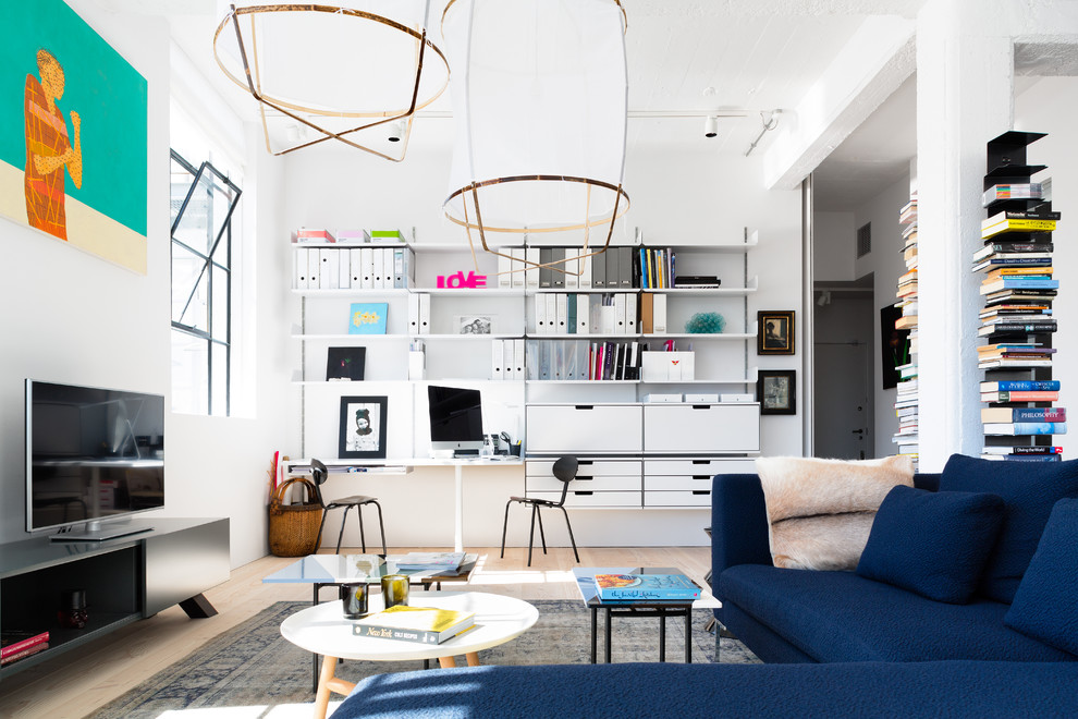 The apartment, which is in a converted industrial space, was completely reconfigured by Cloud to create two bedrooms and a large open plan living space. The architectural details have an industrial feel (concrete ceilings, Critall widows and exposed pipes). The clean lines and high ceilings were enhanced with a pale Douglas fir wide-planked floor and a contemporary kitchen.