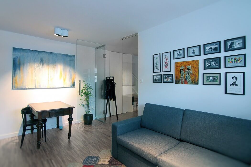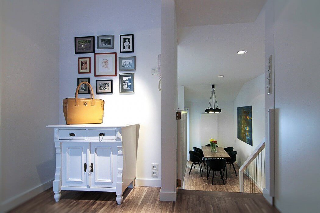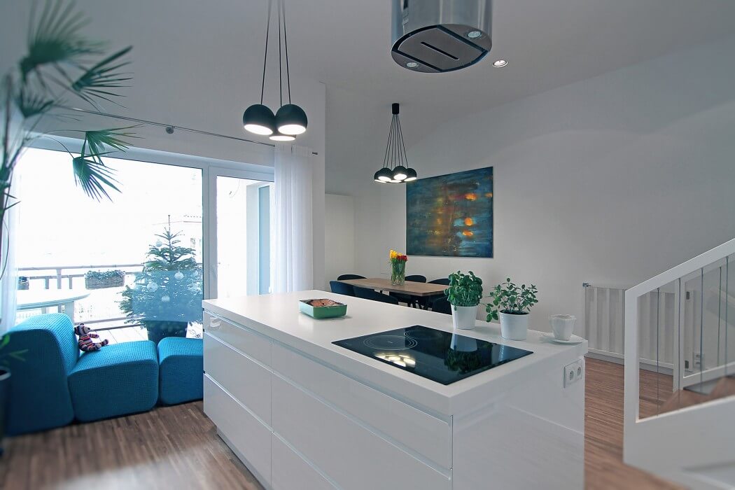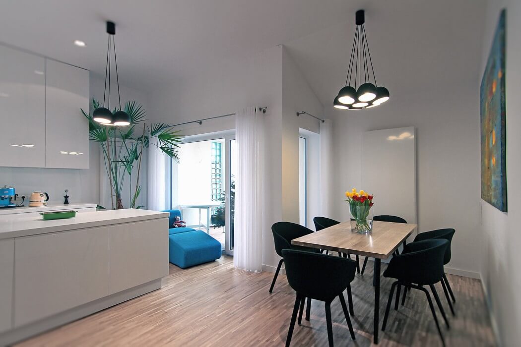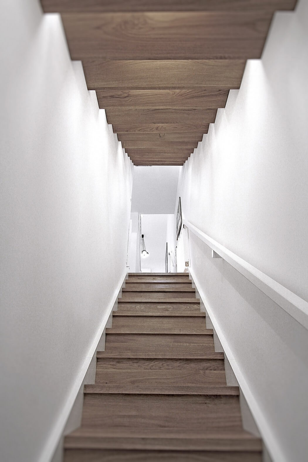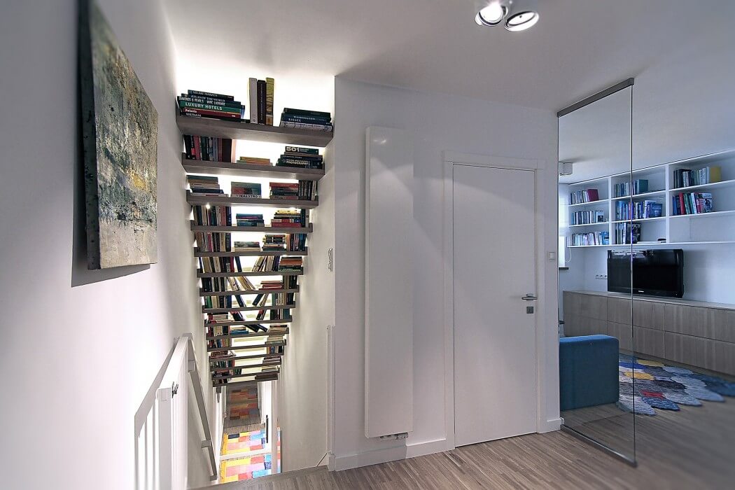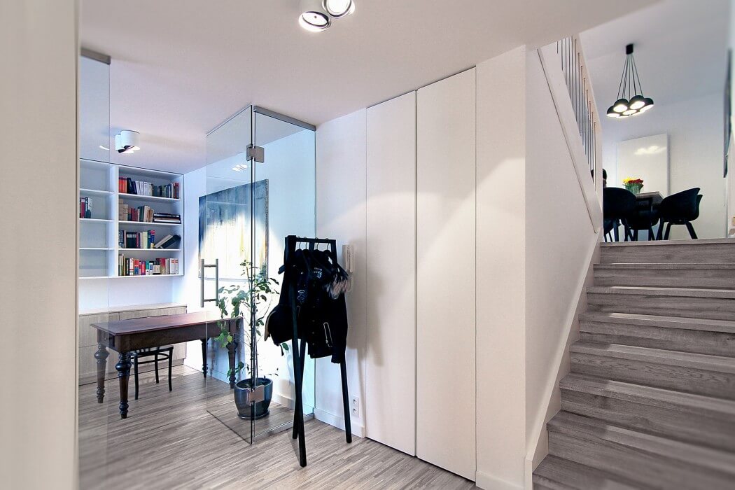 The purpose of the project was the rearrangement of an existing house, characterized by a multiplicity of levels of the interior. It has up to 5 levels, with 90 m2 of the living space. The significant problems of this system were: communication nuisance and low penetration of natural light inside the residential space. The project was focused on natural light exposure improvement and bringing into it a high-quality artificial light as well as facilitation home program by moving the existing functional system. Ascetic design and bright colours of the interior made it possible to emphasise the experience of openness space.