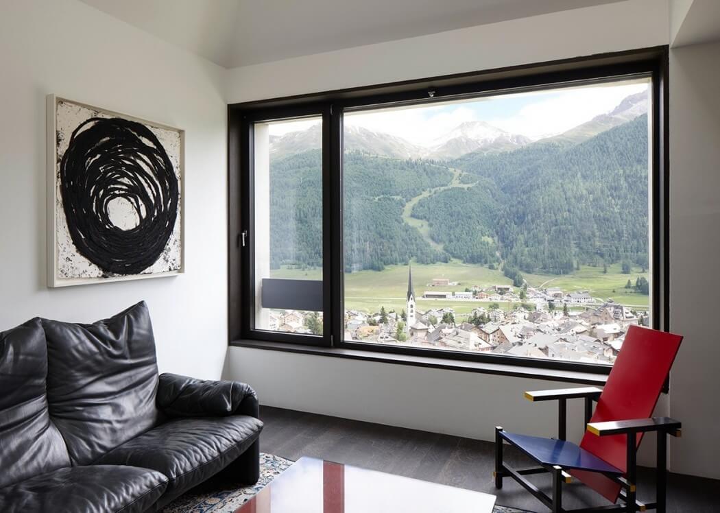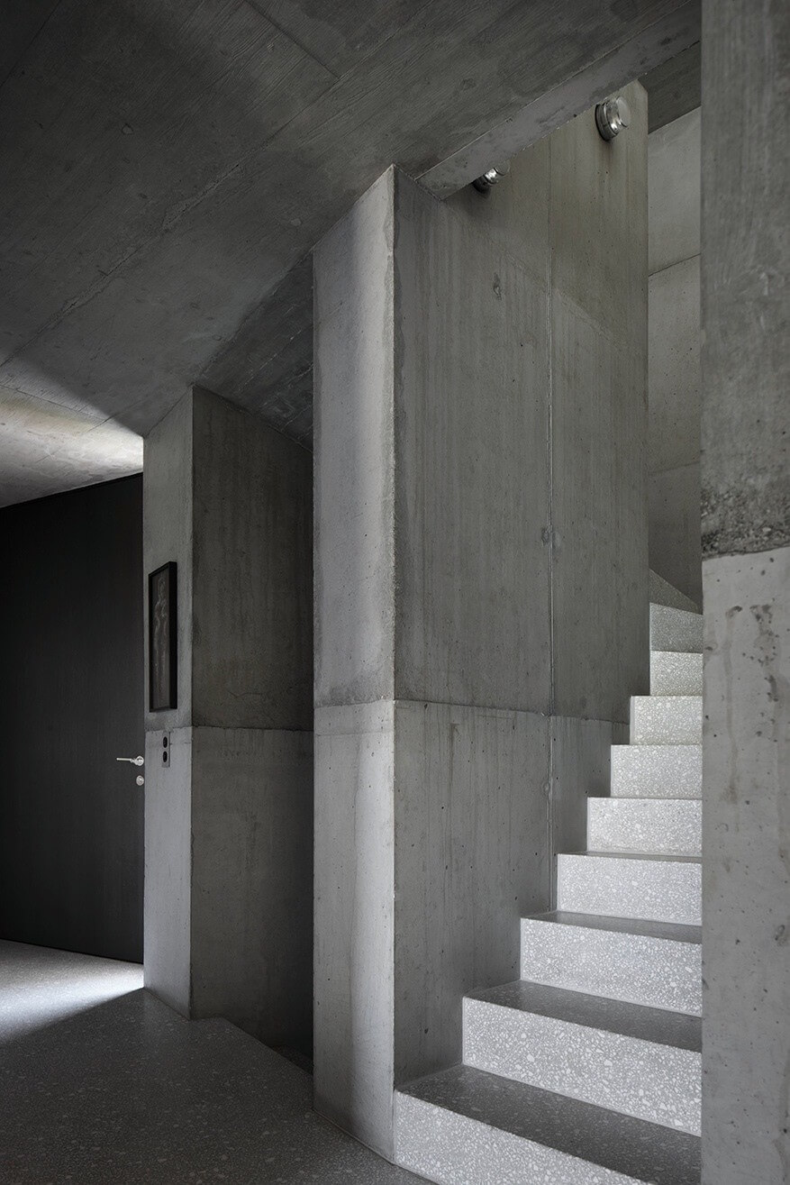 Modern concrete residence situated in Zuoz, Switzerland, designed in 2012 by Men Duri Arquint.