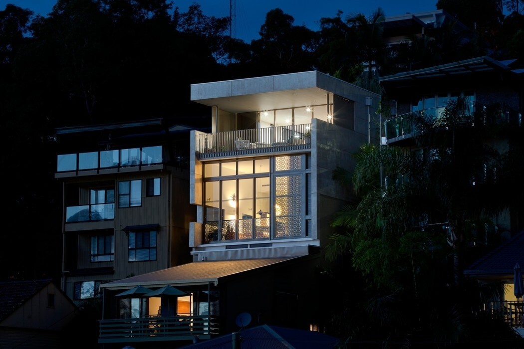The home was the upper duplex of the original early 80’s duplex building, practically pinned to the side of the steep hill, the site drops away from beneath it. In essence the brief was to open up the living spaces to the incredible view that had been restricted by a low roof and small windows and add a second storey with master suite and outside entertainment area so that their fantastic location could be aptly enjoyed.