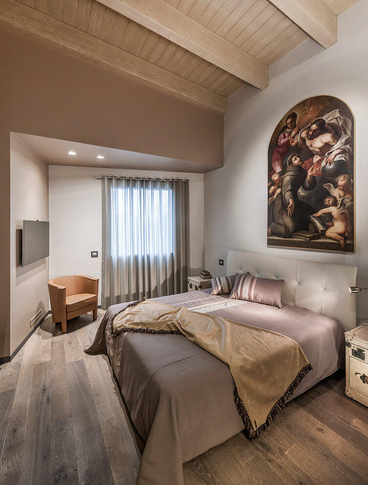 Designed in 2015 by BRANDO concept, this beautiful contemporary attic apartment is located in Cremona, Italy.