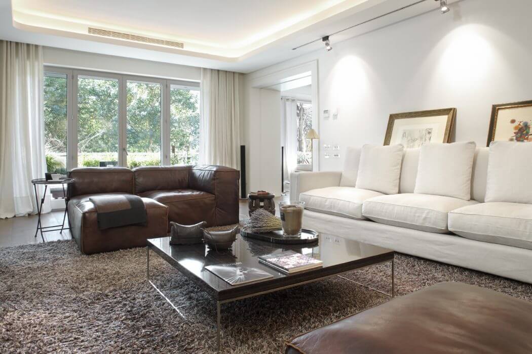 The furniture is a mix of contemporary pieces, classic designer pieces and antiques of diverse origins.