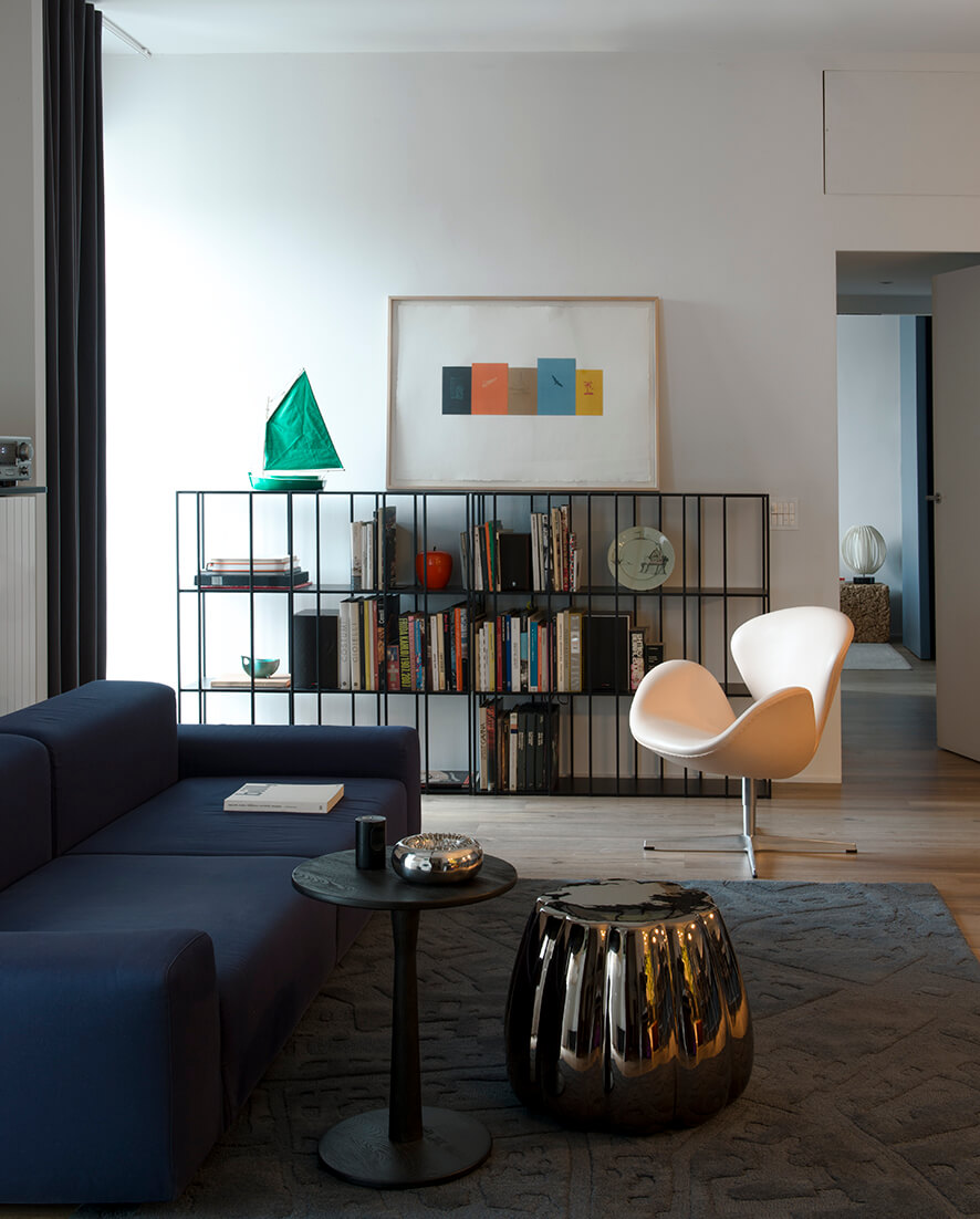 Works of art and a selection of design objects complete the project suggesting the interests and the life of the owner of the apartment.