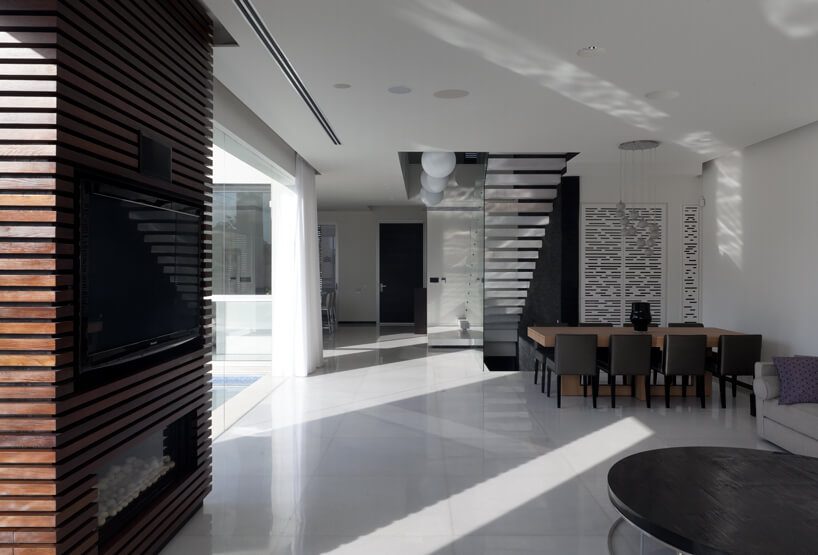Architects Hila and Danny Israelevitz masterminded a home in Savyon, Israel, that gradually reveals its features. Initially, they sketched a modern, open-plan design that catered to a family’s daily needs and lifestyle. The resulting structure cleverly connects the indoors with the outdoors and varies its atmosphere from one space to another.