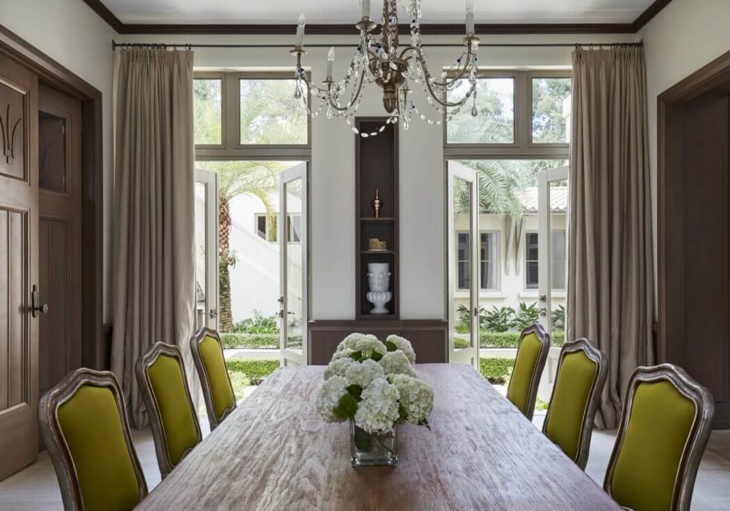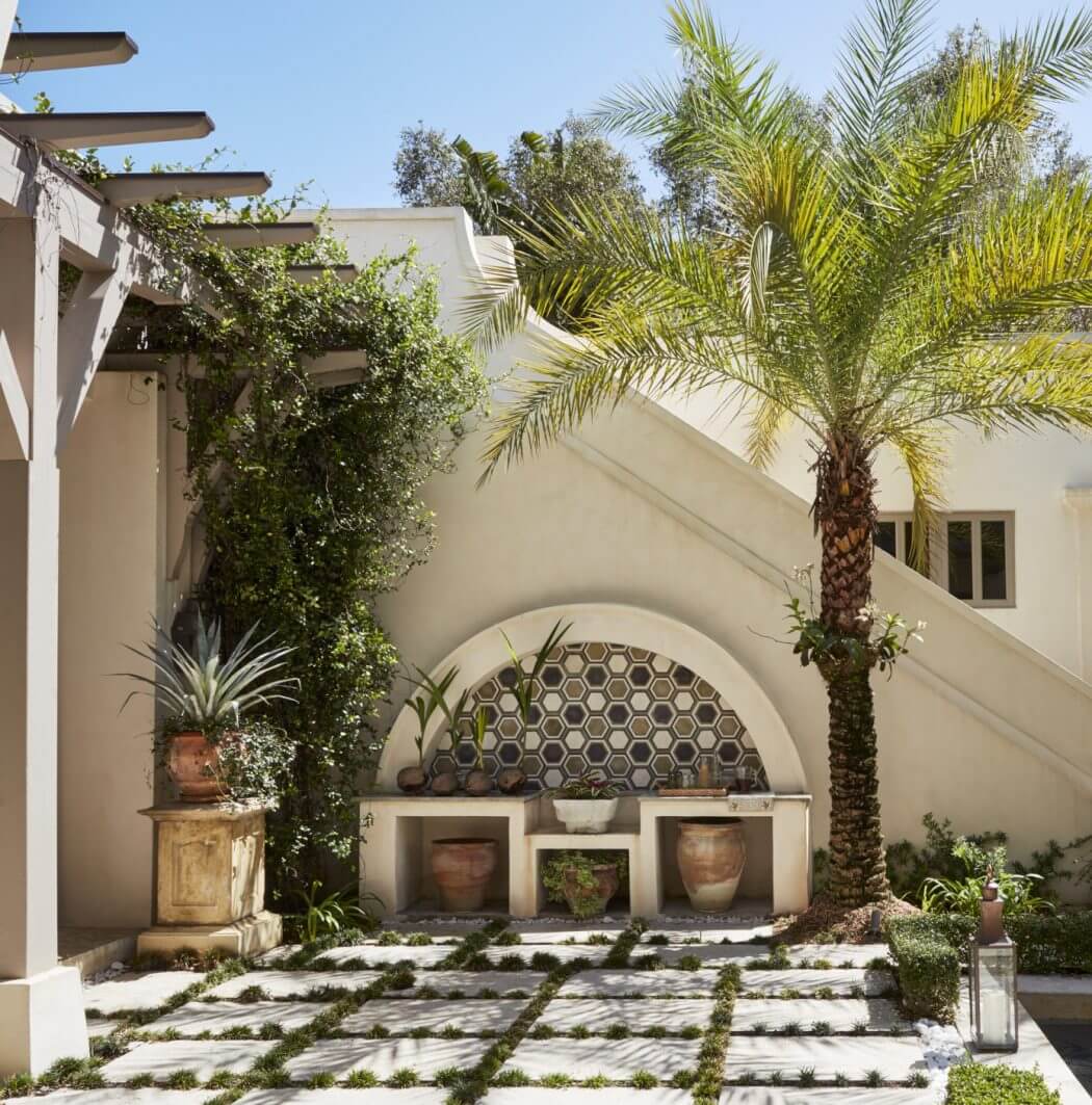 Inside, the villa’s layout promotes a Mediterranean flow from room to room, with high ceilings that enhance ventilation and natural light. Wooden details abound, from 12-foot (3.7 meters) high walnut paneling in the stair hall to hand-scraped cypress ceilings and bleached walnut cabinetry.