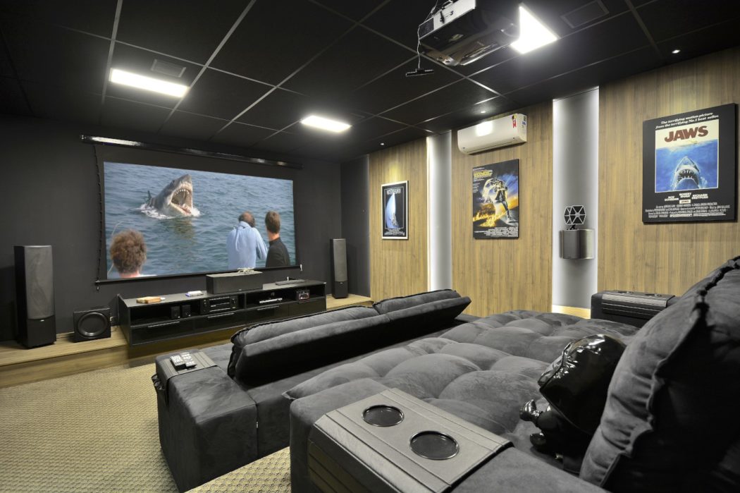 Neutral colors blend with a bespoke lighting design, creating mood-specific illumination. Noteworthy is the Dear Ingo chandelier by designer Ron Gilad, adding a touch of elegance. The second floor features a modern vinyl floor, extending into a cinema room carpeted for ultimate comfort, ensuring each space is not only aesthetically pleasing but also invitingly cozy.