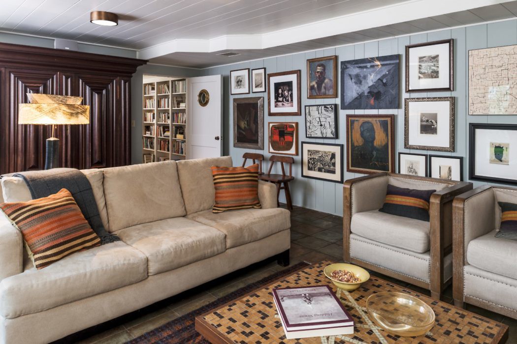 Descending into the den, the mood shifts to intimate sophistication. Here, the curated walls tell stories through framed memories and artwork, while a plush sofa promises restful moments. It’s a room that encapsulates Boston Terrace’s spirit — deeply personal and effortlessly elegant.