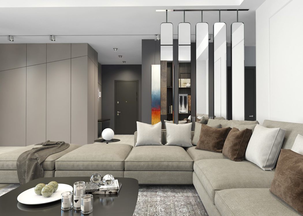 As you step into the apartment, the grandeur of the living area unfolds—a spacious domain that seamlessly blends comfort and style. Clean lines define the plush seating, encouraging relaxation amid a neutral color palette. The room is a careful balance of functionality and aesthetics, grounded by understated elegance.