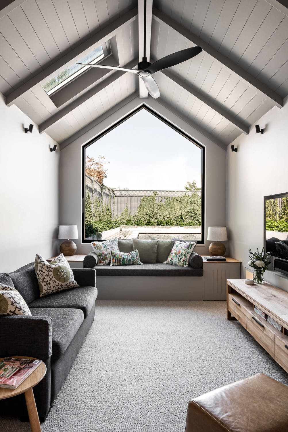 The adjoining outdoor lounge area, accessible via sleek sliding doors, boasts a pergola with a transparent roof. This space provides a harmonious transition for those seeking the caress of the sun or the cool Perth breeze.