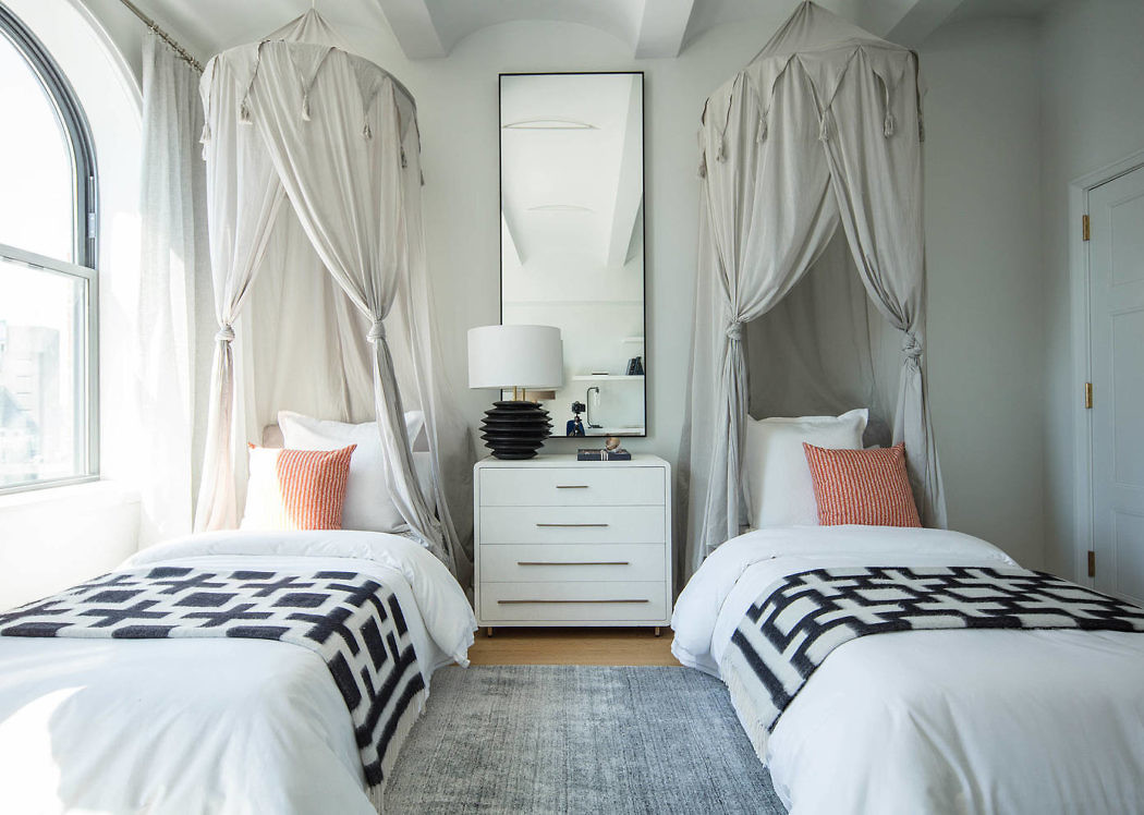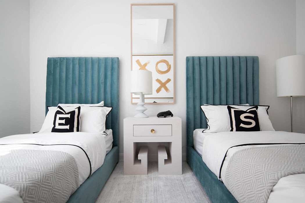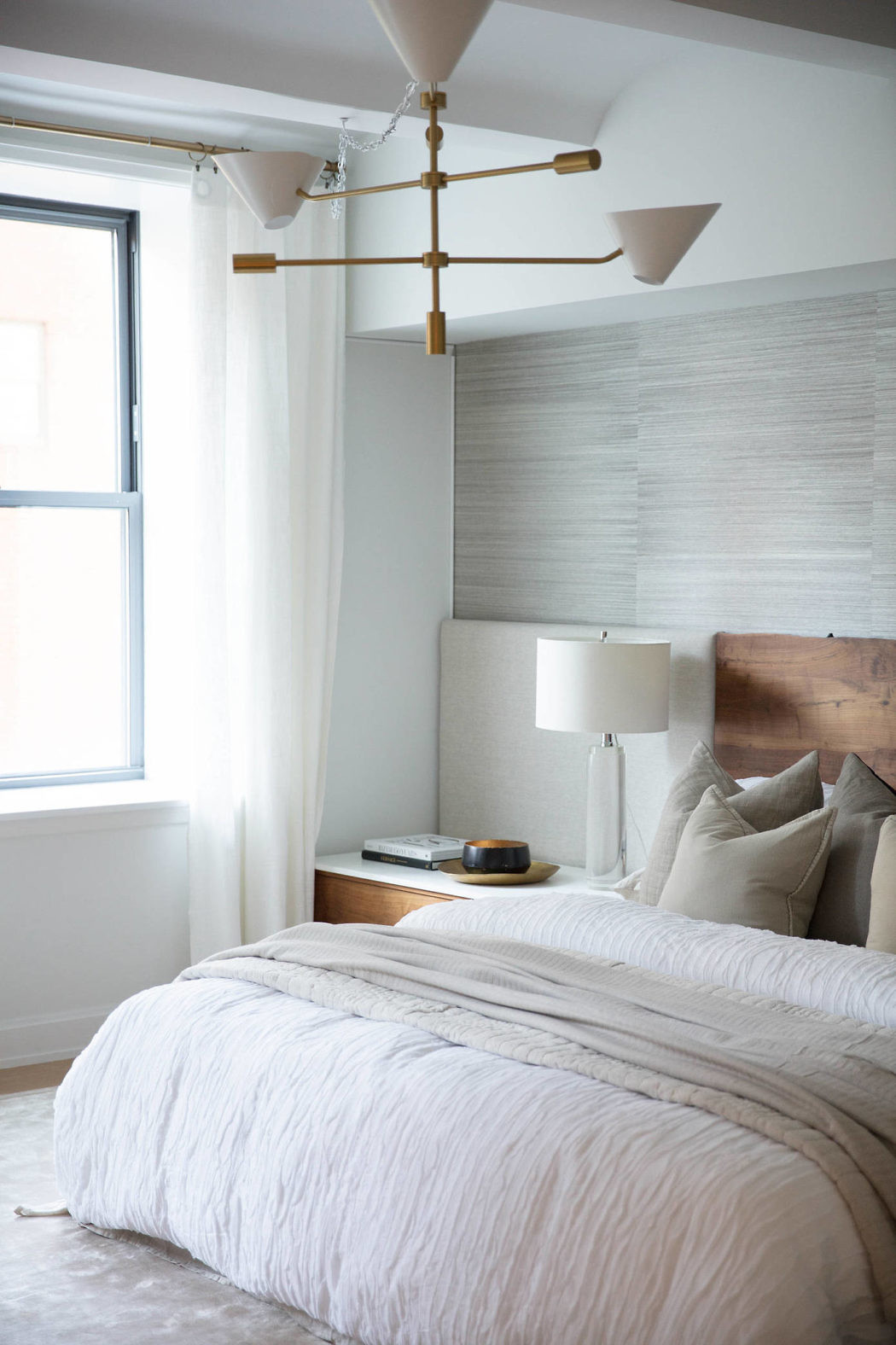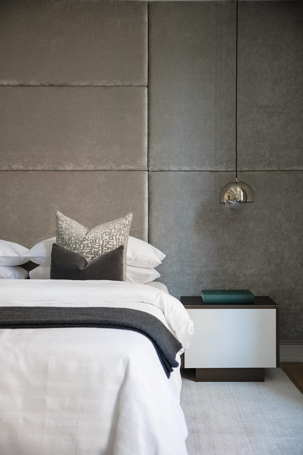 Each bedroom in The Shephard is a sanctuary, featuring bespoke headboards and sumptuous textiles. Muted tones and textured walls create a restful atmosphere, while carefully curated lighting adds depth and warmth. The master bedroom, with its expansive headboard and understated luxury, exemplifies modern tranquility.